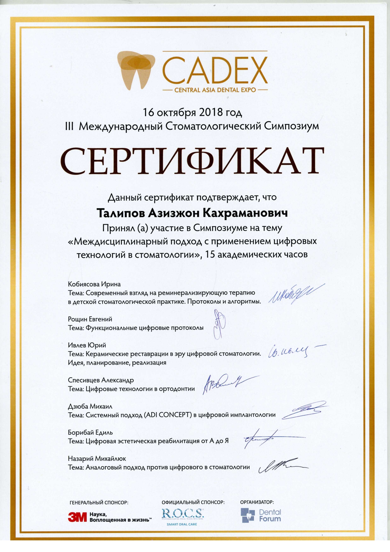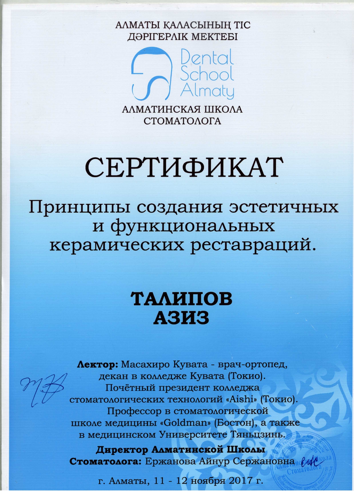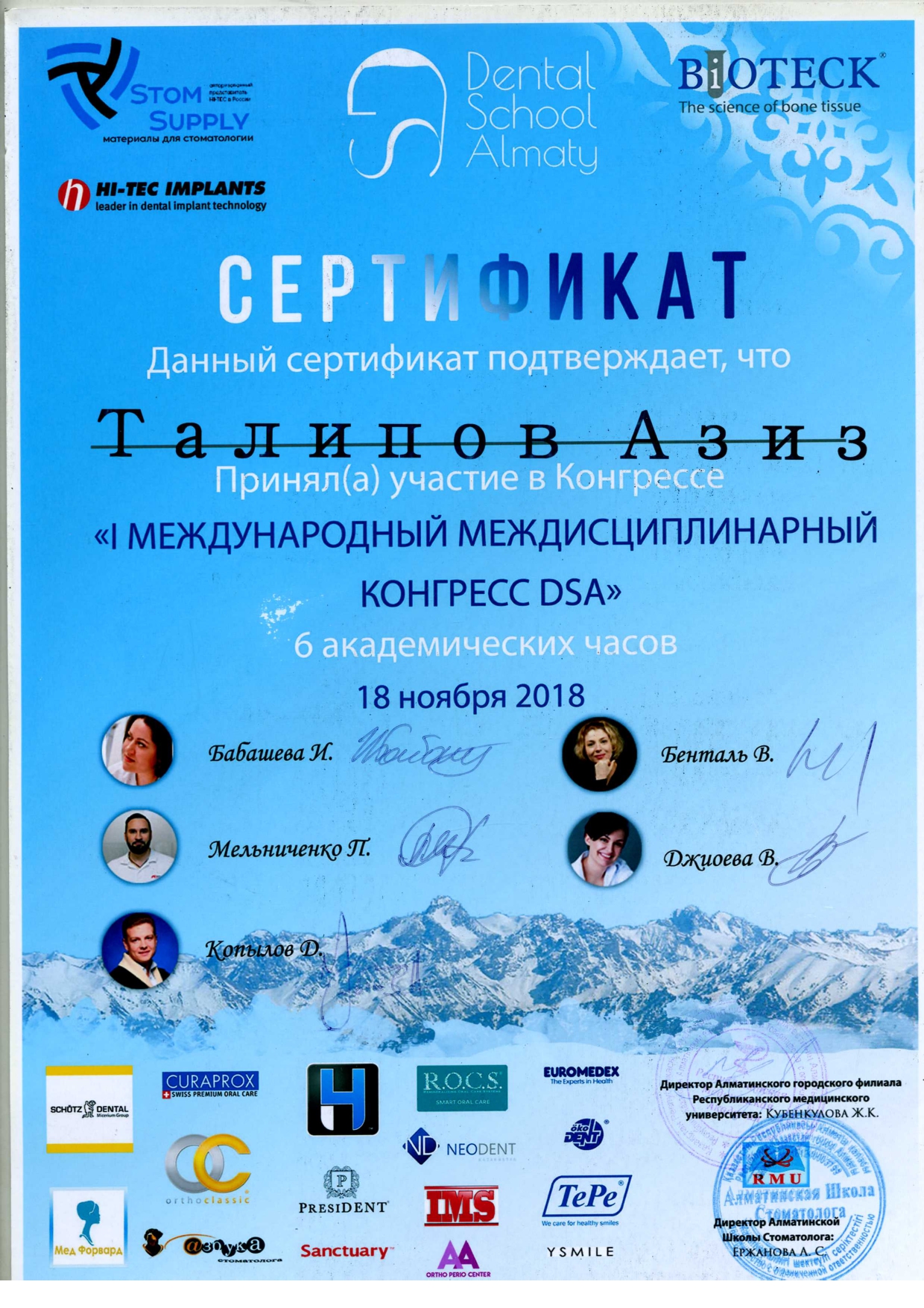 Доктор Азиз Кахраманович, оказывает стоматологические услуги на высшем уровне, самыми передовыми технологиями, такими как апекслокатор, бинокуляр, плазмолифтинг и т.д. Он обучался во многих городах Азии и Европы,учавствовал во многих семинарах и симпозиумах, по сей день ищет новые знания и новые возможности стать лучше для Вашего здоровья!