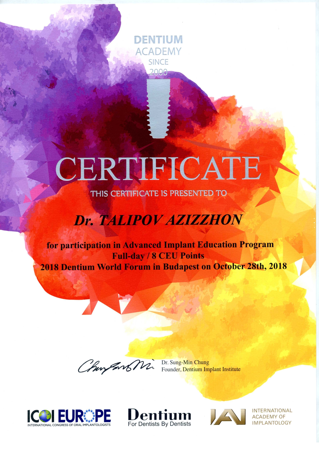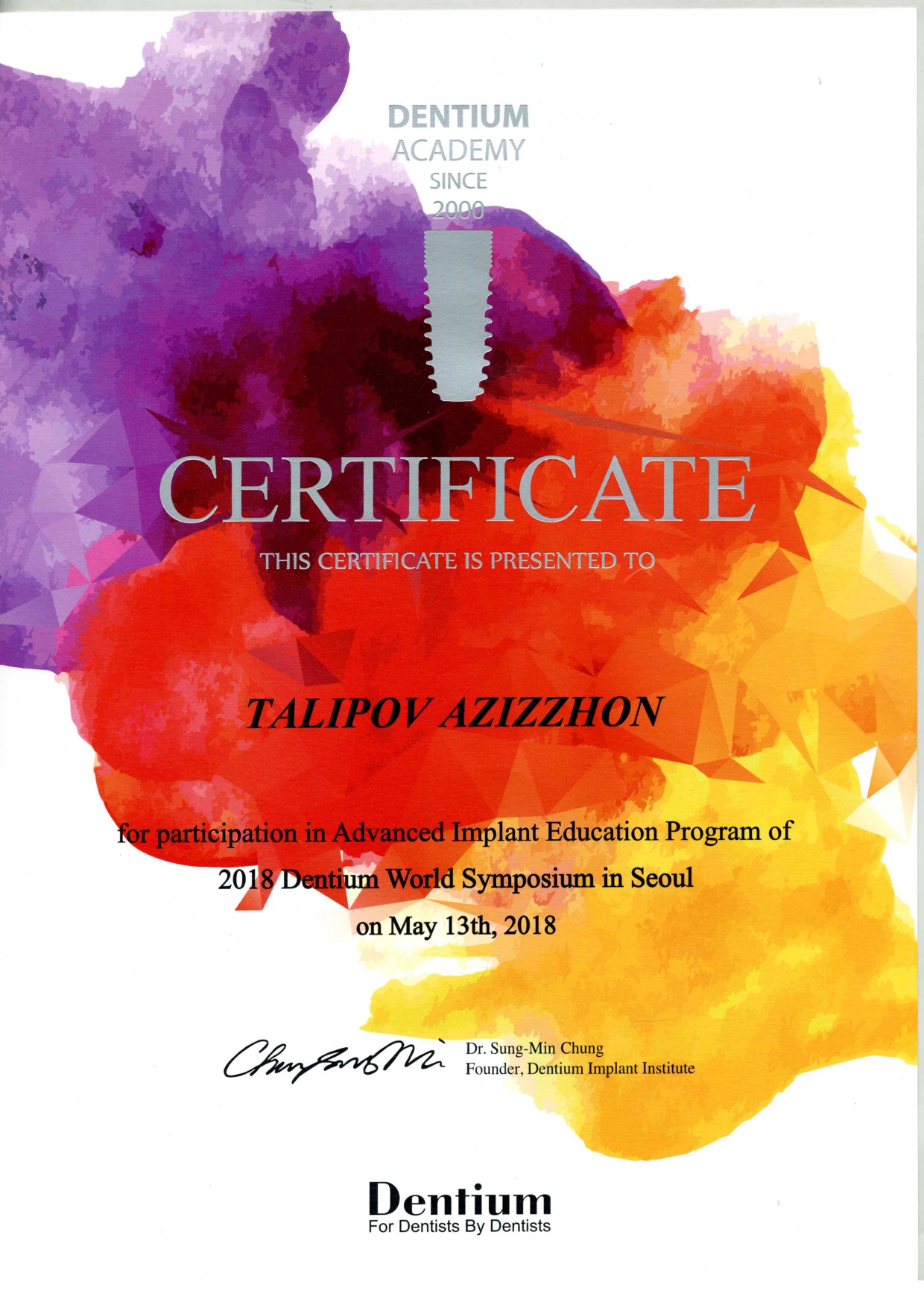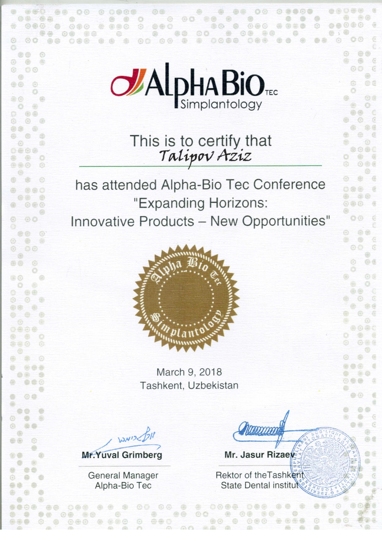 Доктор Азиз Кахраманович, оказывает стоматологические услуги на высшем уровне, самыми передовыми технологиями, такими как апекслокатор, бинокуляр, плазмолифтинг и т.д. Он обучался во многих городах Азии и Европы,учавствовал во многих семинарах и симпозиумах, по сей день ищет новые знания и новые возможности стать лучше для Вашего здоровья!